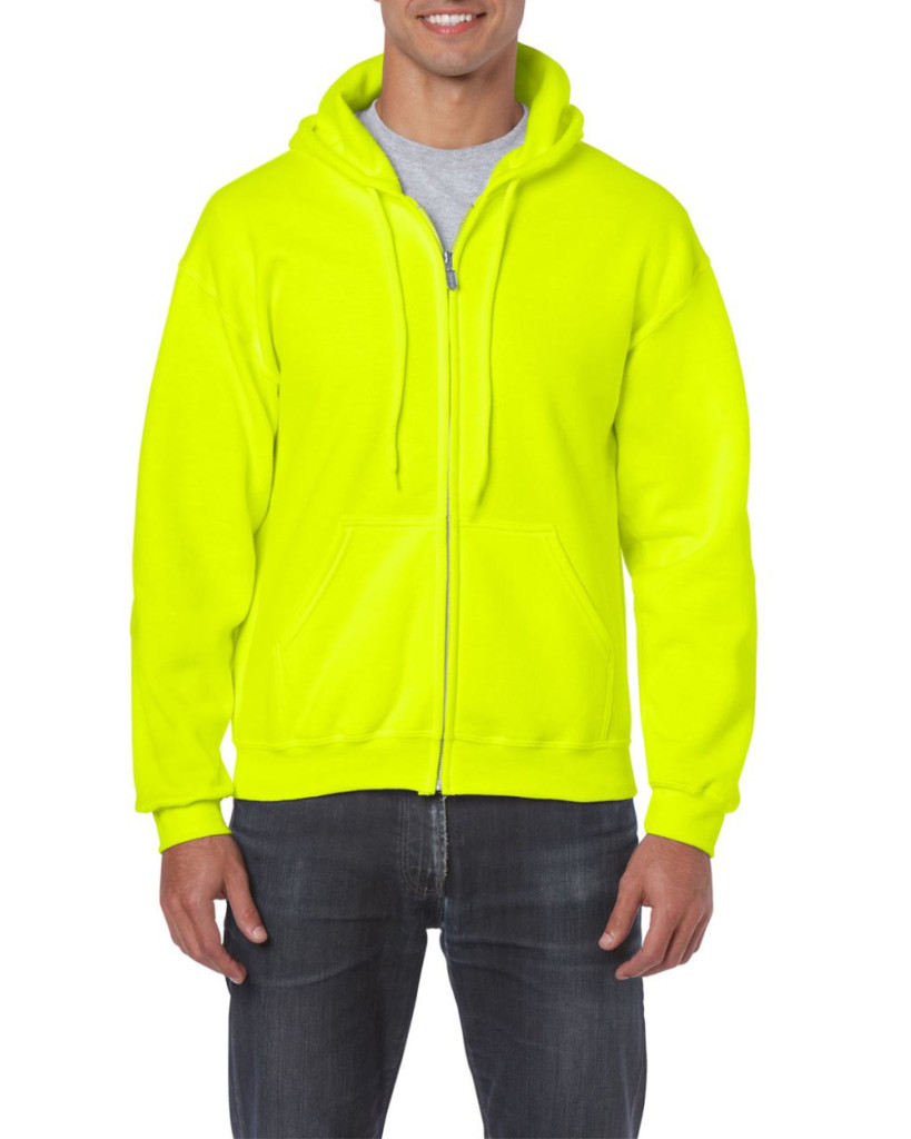Gildan GI18600 unisex cipzáros kapucnis pulóver - safety green szín