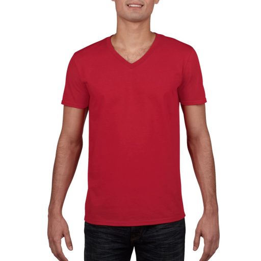 Gildan GI64V00 pamut V-nyakú férfi póló - cherry red szín