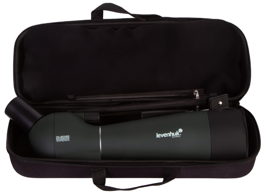 A Levenhuk Blaze BASE 80 váza műanyag. Bármilyen 1/4"-os menettel ellátott háromlábú állvánnyal használható. A készletben megtalálható egy fém háromlábú állvány, amivel a figyelőtávcsövet asztalra vagy ablakpárkányra helyezheti. És tartozik még hozzá egy kemény tok, amely a távcső tárolásához és szállításához használható.