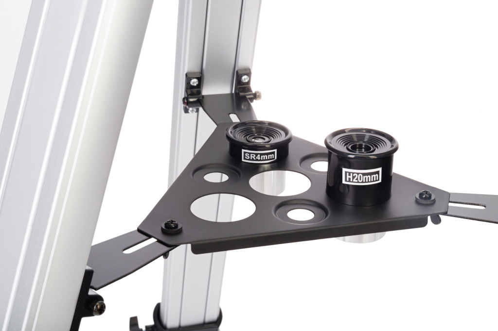 Üveg lencsékkel rendelkezik, amelyeken tükröződésgátló bevonat található. Az optikai elemek optikai torzítás nélkül jelenítik meg az éles és tiszta képet. A készlet három szemlencsét tartalmaz a világűr felfedezéséhez, egy felfelé álló szemlencsét földi megfigyelésekhez, egy Barlow-lencsét, valamint egy diagonális tükröt, hogy Ön megfigyeléskor módosíthassa a nagyítási tartományt. Mindazonáltal ha ez nem elegendő, bármikor vásárolhat további tartozékokat. A teleszkóp egy sztenderd 31,75 milliméteres (1,25 hüvelykes) fókuszállítót tartalmaz, így a termék szinte a forgalomban kapható összes tartozékokkal kompatibilis.