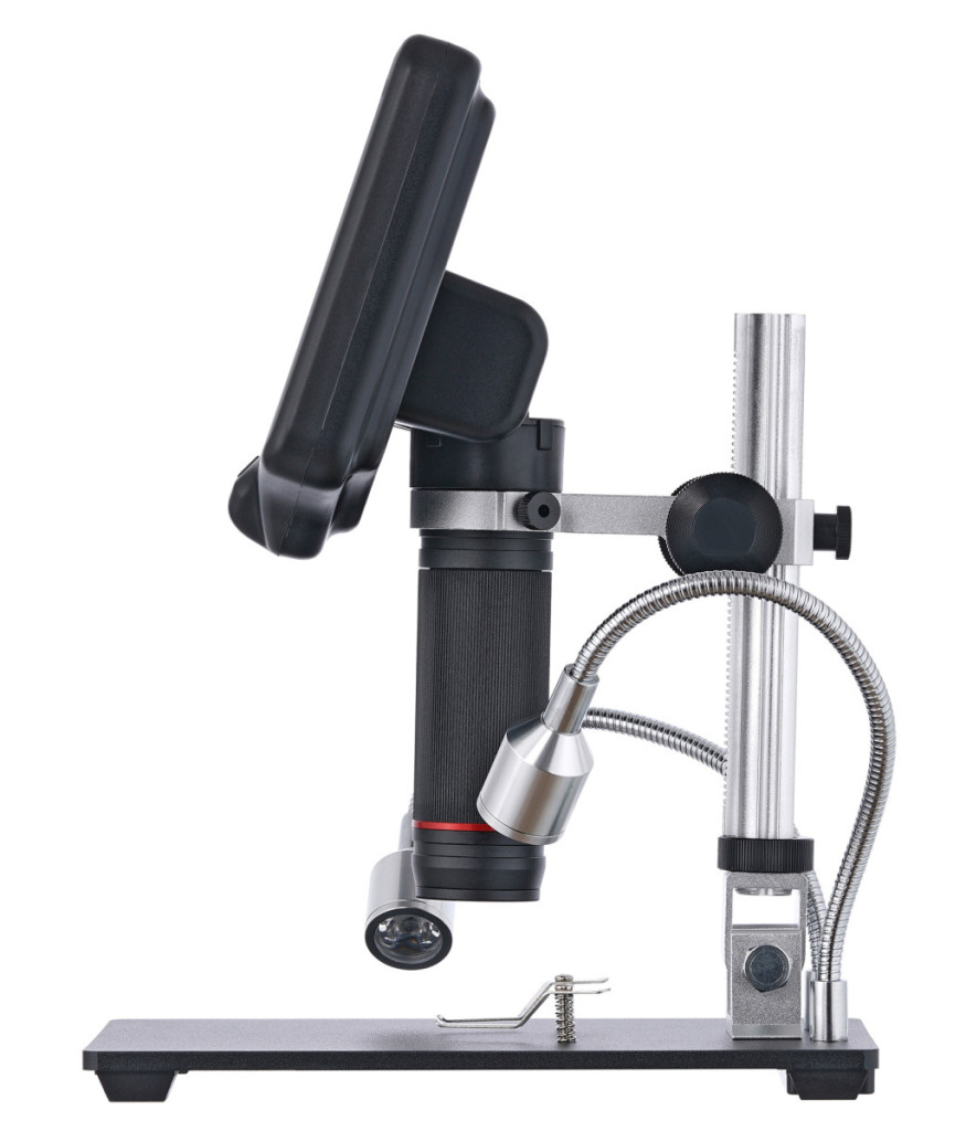 A beépített képernyő 7 hüvelykes átlóval rendelkezik. Az objektívből érkező kép színesen, kontrasztosan és tisztán kivehetően jelenik meg. A képernyő kis szögben dönthető a kényelmes használat érdekében. A teljes nagyítás az 5-szörös és a 270-szeres érték között módosítható, és a nagyítás optikai része az 5–40-szeres érték között mozog. A kép külső képernyőn is megjeleníthető a HDMI porton keresztüli csatlakoztatással.