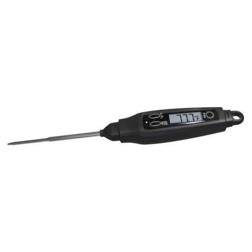 A készülék az ételbe helyezendő saját hőmérővel, valamint kényelmes nyéllel rendelkezik. A nyelén található vezérlőgombok segítségével állítható a mértékegység, rögzíthető az aktuális hőmérséklet, valamint monokróm kijelzőjén láthatóak a mért értékek. Az eszköz elemmel működik. Az energiatakarékos használat érdekében automatikus kikapcsolás funkcióval rendelkezik.