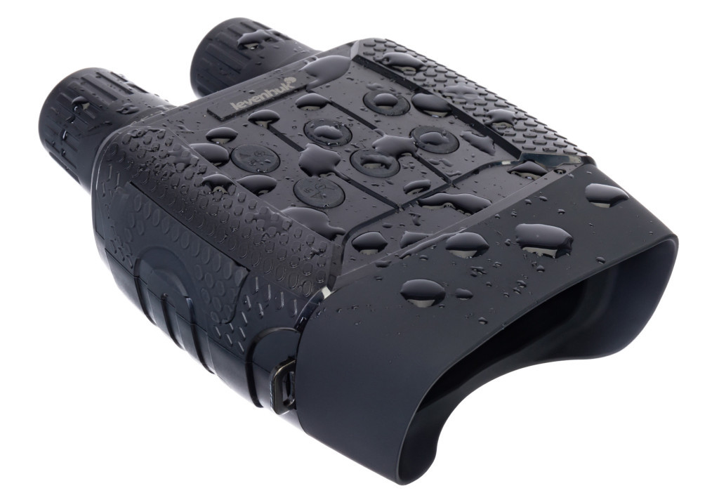 Az elektronikai és optikai részegységek ergonomikus, cseppálló vázban kaptak helyet, amely csúszásmentes felülettel rendelkezik. A kétszemes távcső így kényelmesen kézbe vehető. Az eszközt kézben tartva a vezérlőgombok pontosan az ujjak alatt helyezkednek el. Az eszköz felhasználóbarát, a menürendszerben rendkívül könnyedén lehet lépkedni. Az éjjellátó kétszemes távcső AA elemekkel vagy AA újratölthető Ni-MH elemekkel működik, amelyek csaknem bármilyen boltban könnyedén beszerezhetők. Érdemes egy extra csomagot is magával vinnie, hogy az eszköz nehogy a legszerencsétlenebb pillanatban kapcsoljon ki. Habár erre kevés esély van, hiszen egy elem- vagy újratölthető elemcsomag 4 - 10 óra folyamatos használatra elegendő. Az elemek élettartama a háttérvilágítás intenzitásától függ.