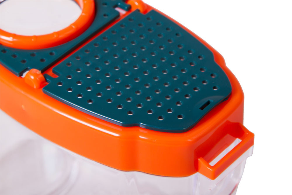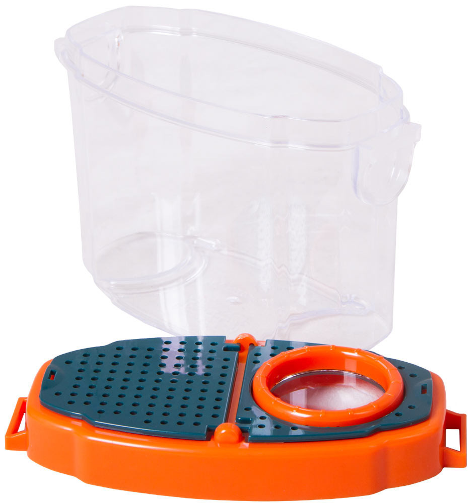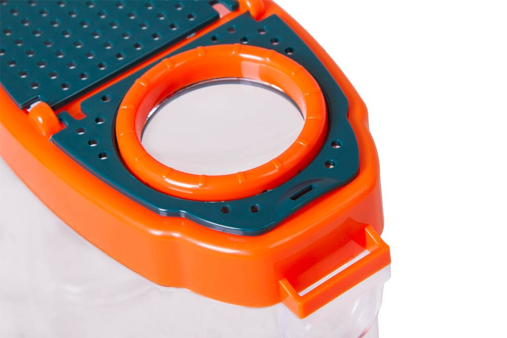 A Levenhuk LabZZ C3 rovarmegfigyelő doboz kifejezetten ifjú természetvizsgálók számára készült. Az átlátszó tároló 5x-ös nagyítást biztosít a fedélen. A tárolóba kisebb objektumok (pl. kavicsok, talajminta, növények vagy rovarok) helyezhetők, ahol a nagyító segítségével azok részletesen megfigyelhetők. Ezen kívül némi vízzel feltöltve halat vagy ebihalat is belehelyezhet. A kényelemről pedig a dobozhoz tartozó nyakpánt és műanyag csipesz gondoskodik.