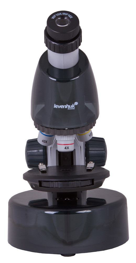 Bár ezt a mikroszkópot gyermekek számára alakították ki, optikai teljesítmény szempontjából sok „felnőtt” mikroszkóppal vetekedik. A mikroszkóp három objektívlencsével van felszerelve: 4-szeres, 10-szeres és 40-szeres. Az objektív cseréjéhez csak el kell forgatni a revolverfejet. A mikroszkóp egyedi jellemzője a két pozícióba csúsztatható szemlencse (10-szeres és 16-szoros nagyítással). Nagyon kényelmes használni. Sőt, sokkal kényelmesebb, mint két szabványos szemlencsét használni. A mikroszkóp hat szintű nagyítást kínál: 40x, 64x, 100x, 160x, 400x és 640x.
