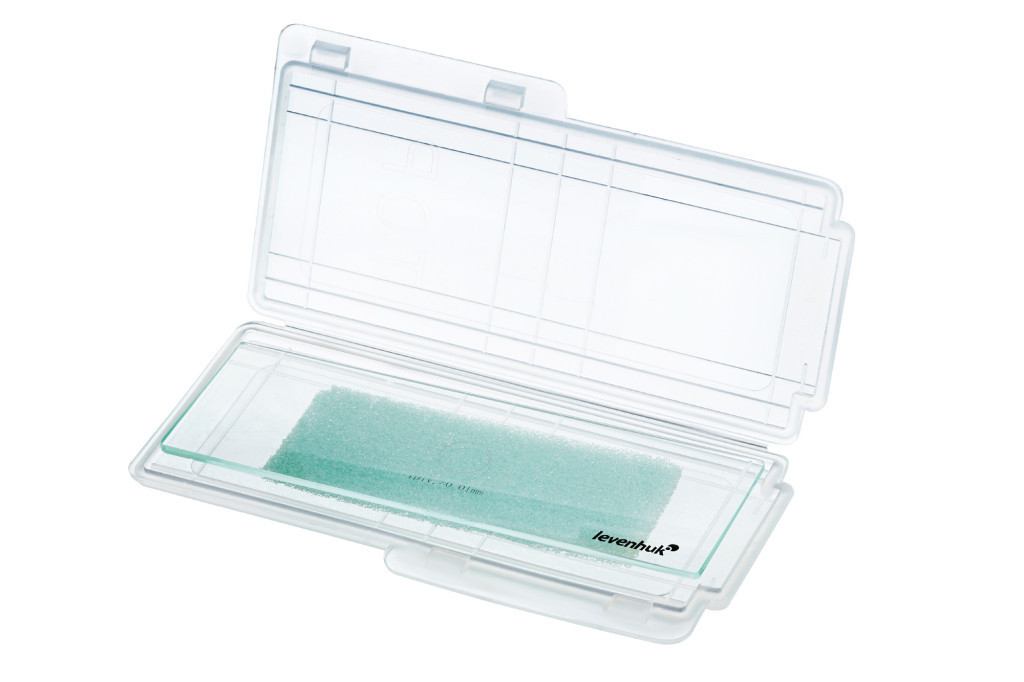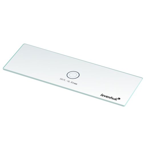 A Levenhuk MED kalibrációs tárgylemez a mikroszkóp képelemző programok kalibrálására szolgáló tartozéka. Valójában átlátszó üvegdarab a felületére vésett mikrométeres skálával. A körben elrendezett skála a mikroszkóp alatt jól látható. A legkisebb osztás 0,01 mm. A kalibrációs tárgylemezzel gyorsan beállítható a program a kívánt mértékegységben történő mérésre.