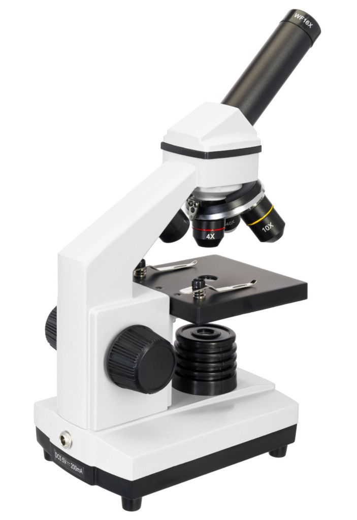 A mikroszkóp megbízható fém teste lehetővé teszi a gyakori használatot. A 45 fokban döntető, egyszemes fejrész lehetővé teszi, hogy a lehető legkényelmesebben végezhesse megfigyeléseit. 360 fokban forgatható a tengelye körül – ez a funkció nagyon hasznos csoportos munkavégzés esetén.
