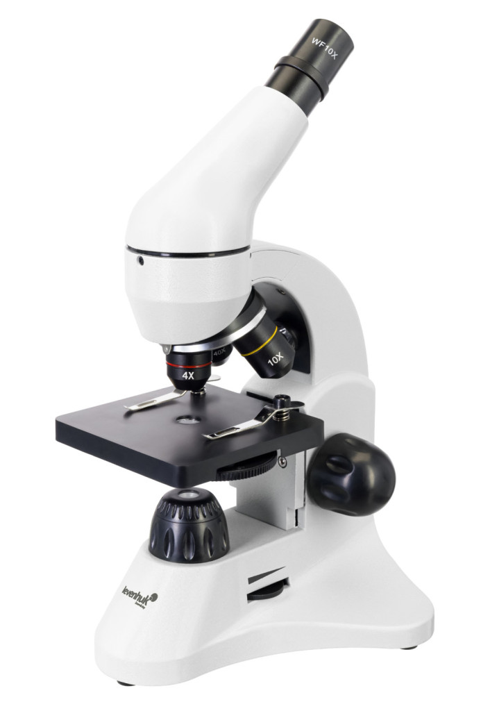 A mikroszkóptest minőségi műanyagból készült, a műszer ezért könnyű, mégis tartós. A fejrész 45°-ban dönthető, így megfigyeléseit még kényelmesebb helyzetben tudja elvégezni. 360°-ban forgatható is a tengelye körül, ami kifejezetten kényelmes csoportos megfigyelések során – a fejrész könnyedén forgatható a soron következő, megfigyelést végző résztvevő számára. A mikroszkóp elektromos hálózatról vagy elemekkel működtethető.