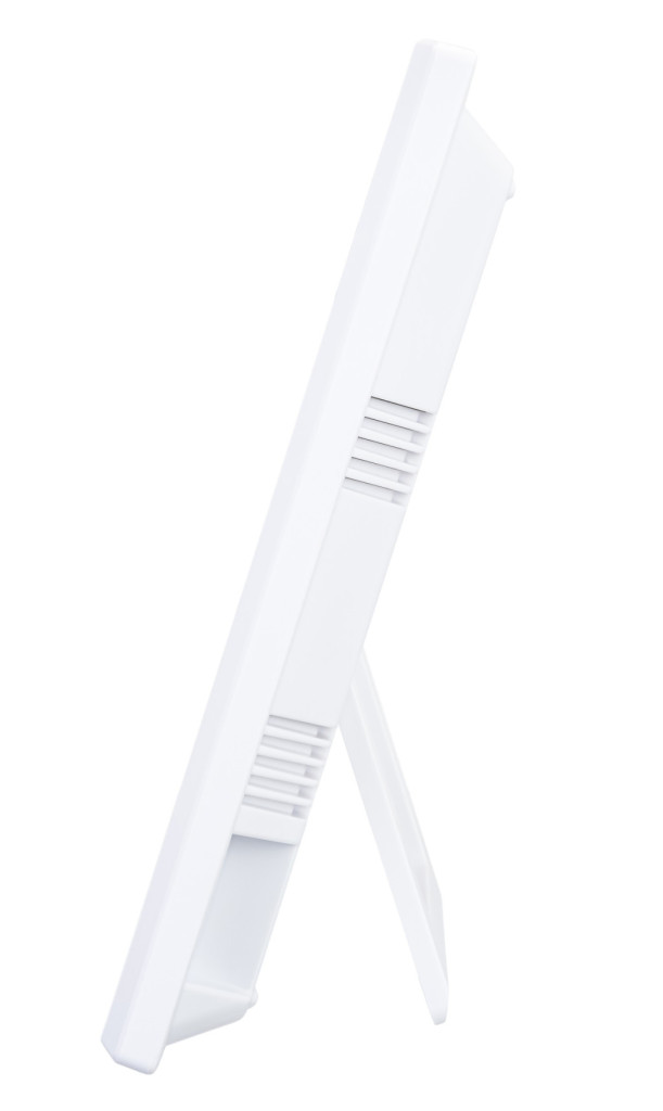 A vezérlőgombok a hátlapon találhatók, így a Levenhuk Wezzer PLUS LP30 stílusos és minimalista külsővel rendelkezik. A bázisállomáson található egy kihajtható asztali állvány, az érzékelőn pedig egy furat, ami lehetővé teszi a falra szerelést.