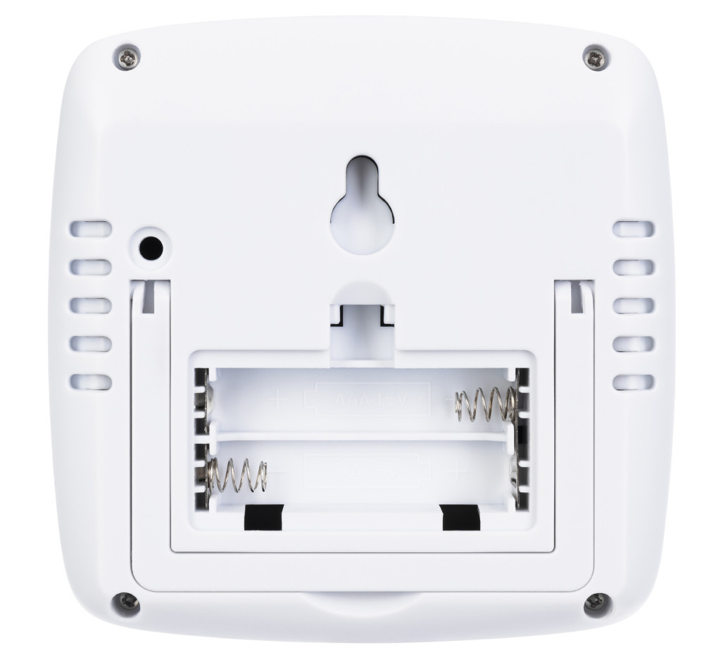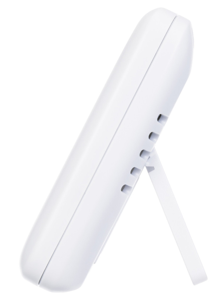 Az eszköz standard elemekkel működik. Falra szerelhető, vagy asztali állványra is helyezhető.