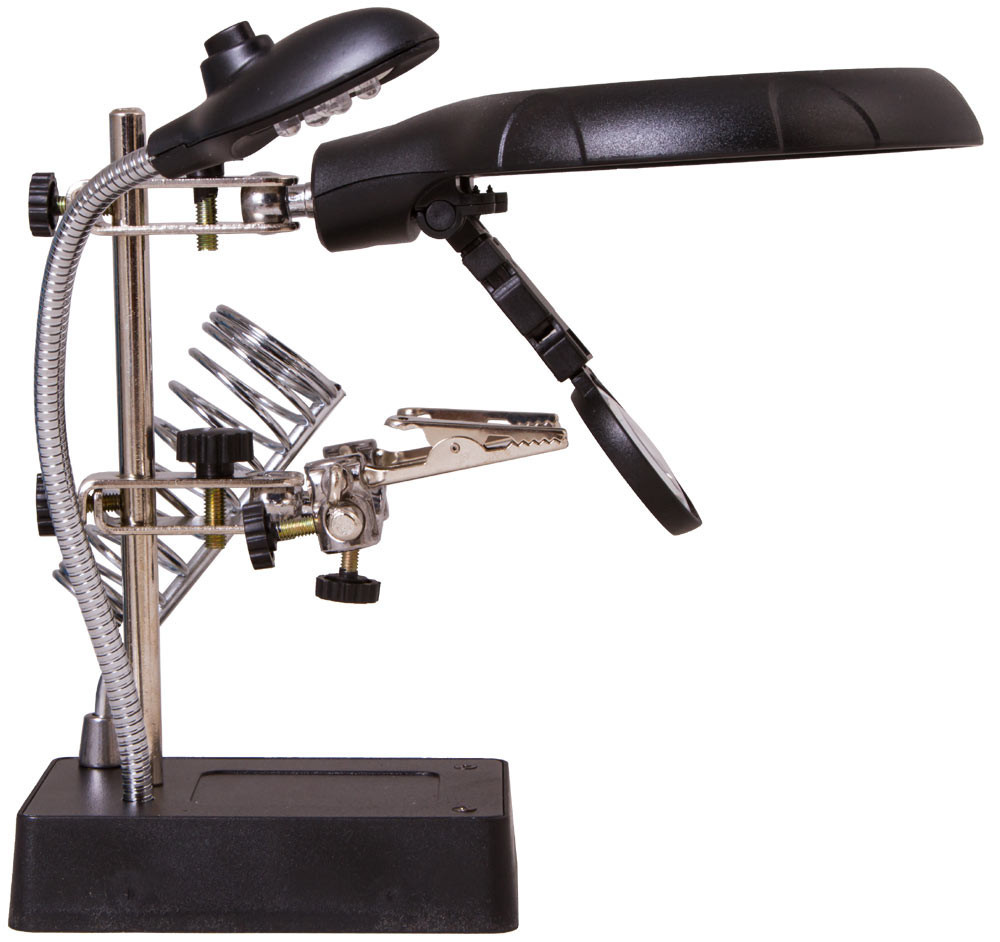 A Levenhuk Zeno Desk D11 nagyító kombinálható lencsékkel, LED-világítással, rugalmas nyakkal, „harmadik kéz” eszközzel és egy munkaeszközök számára készült tartóval van felszerelve. Elengedhetetlen segédeszköz mindenkinek, aki aprólékos kézimunkát végez, például ékszerészeknek, villanyszerelőknek, órásmestereknek vagy modellezőknek.