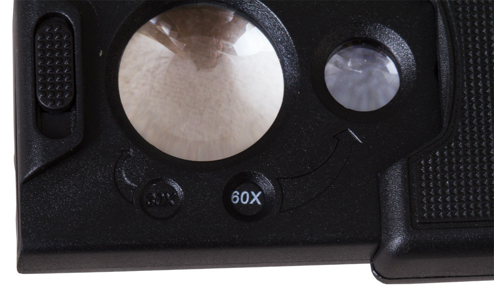 A nagyító két beépített világítással van ellátva. A LED-ek lehetővé teszik a nagyító gyenge fényviszonyok közötti használatát, az ultraibolya fénnyel pedig tökéletesen ellenőrizhető a papírpénz eredetisége. A világítás a házon található kapcsolóval kapcsolható fel.
