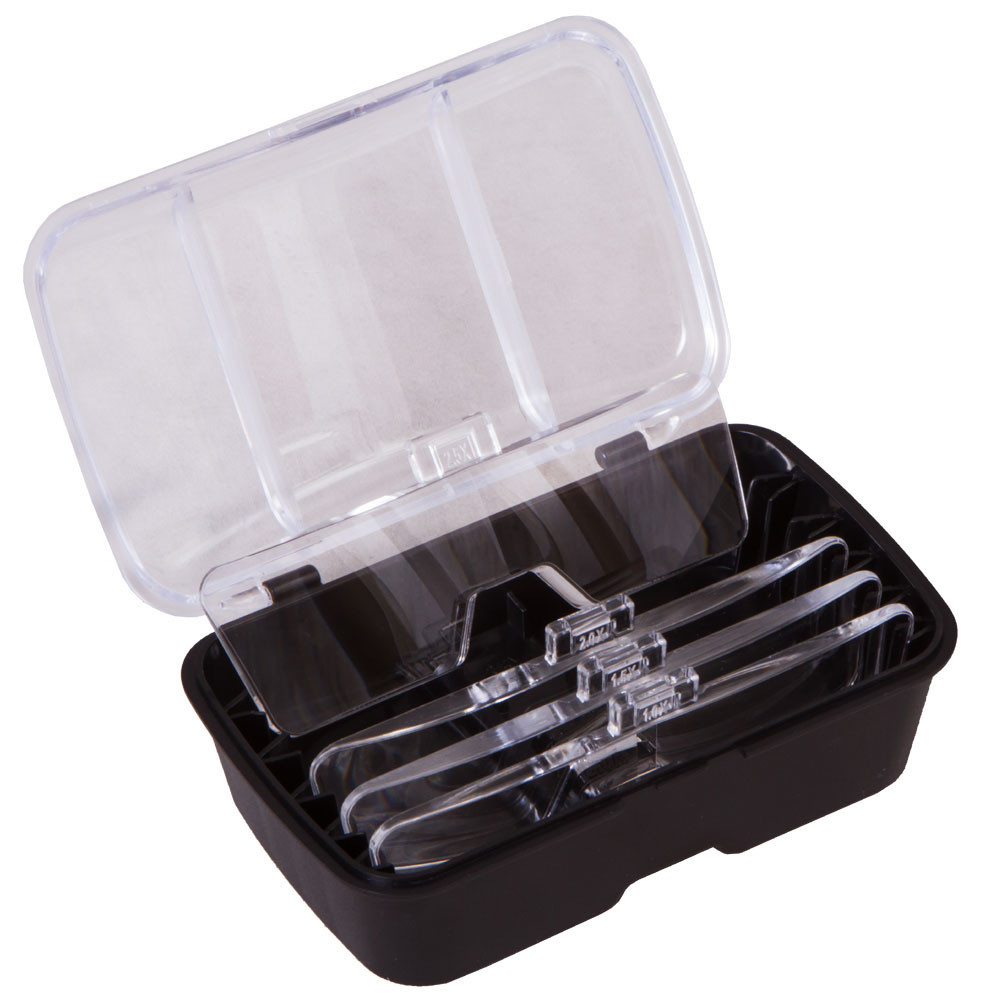- Nagyítószemüveg öt cserélhető lencsével