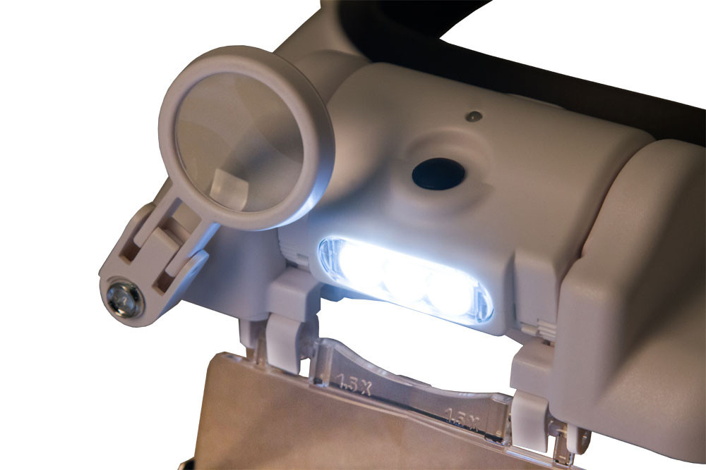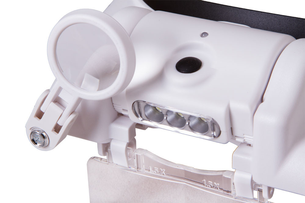 lehajtható lencse a jobb szemnél, állítható világítás-fényerő |