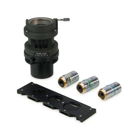 - Végtelen síkú akromatikus Hoffman objektív: 10x/0,25 ∞/1,2, parfokális távolság: 60 mm