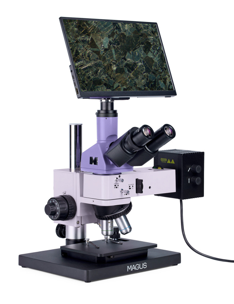 Magus Metal D630 BD LCD metallográfiai digitális mikroszkóp világos látóterű, sötét látóterű és polarizációs mikroszkópiai technikákhoz. Az erős halogén világítás bármilyen objektívlencsével és bármilyen mikroszkópiai módszerrel minőségi képet biztosít. A mikroszkópot fémek, félvezető anyagok és nem átlátszó objektumok mikrostruktúrájának minőség-ellenőrzésére és tanulmányozására tervezték. Segítségével kutatások végezhetők a gyártólétesítményekben, kutatóközpontok laboratóriumaiban, valamint az egyetemi tanszékeken.