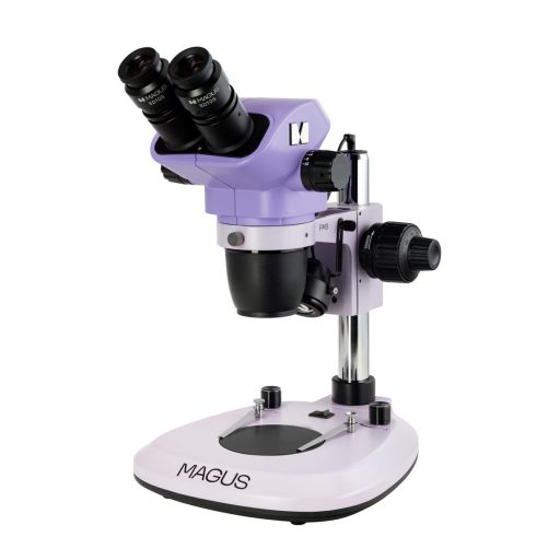 A mikroszkópfej két csövet tartalmaz, és 10x-es nagyítású, 22 mm-es látómezővel rendelkező szemlencsékkel egészül ki. Az egyik csőbe digitális kamera szerelhető a szemlencse helyére. A fej a saját tengelye körül forgatható, valamint tetszőleges helyzetbe állítható.Az elsődleges nagyítást a nagyító objektív biztosítja. A sima nagyítással együtt úgy állítja be az optikai rendszer fókusztávolságát, hogy a fókusz mindig a tárgyon maradjon. A Magus Stereo 8B mikroszkóp 8,4:1 arányú nagyítást tesz lehetővé. A nagyítást vagy a látómezőt, valamint a munkatávolságot segédobjektívek segítségével változtathatja meg.Az élesség beállítása koaxiálisan elhelyezett gombokkal történik; van durva és finom beállítás is. A finom fókuszálás 40x-nél nagyobb nagyítás esetén ajánlott. A gombok az állvány oldalain találhatók. A felhasználó beállíthatja a durva fókuszálási elmozdulás merevségét.A mikroszkóppaé átlátszó és átlátszatlan minták egyaránt megfigyelhetők. A tárgyasztalt ezekre a célokra két lemezzel látták el: egy átlátszóval és egy fekete-fehérrel. Az első átmenő fényben való munkavégzéshez szükséges. A tárgyat így lágy, egyenletes fény éri. A második lemez visszavert fényben való munkavégzéskor kerül beszerelésre. A felületének kontrasztosnak kell lennie a tárgyhoz képest.A tárgyat két LED-es világítótest világítja meg átmenő és visszavert fénnyel. Mindkettő 3 W teljesítménnyel és 50 000 óra hasznos élettartammal rendelkezik.