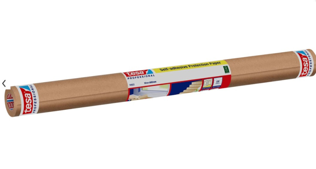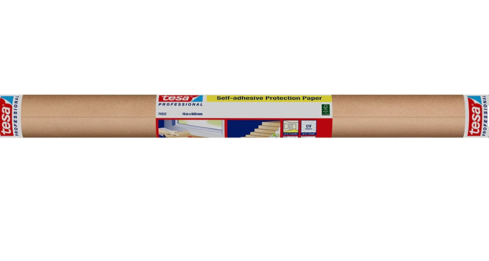 tesa® öntapadó védőpapír professzionális minőségű kraftpapír, amely ideális a nagy felületű védelemre és takarásra festési vagy felújítási munkák során. Problémamentes és hatékony védelmet nyújt a kiömlött festékekkel és karcolásokkal szemben különböző felületeken, például ablakpárkányokon, lépcsőkön, padlókon és munkalapokon. Könnyen felhelyezhető, áthelyezhető és eltávolítható ragasztómaradványok nélkül, így a takarítás problémamentes.