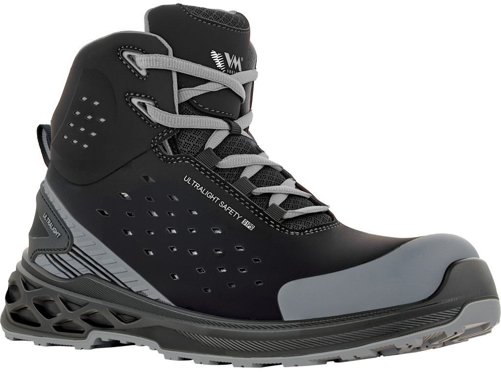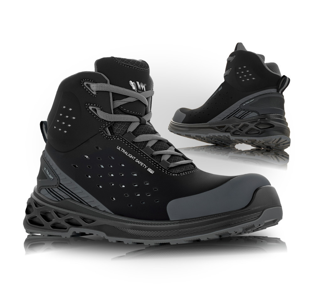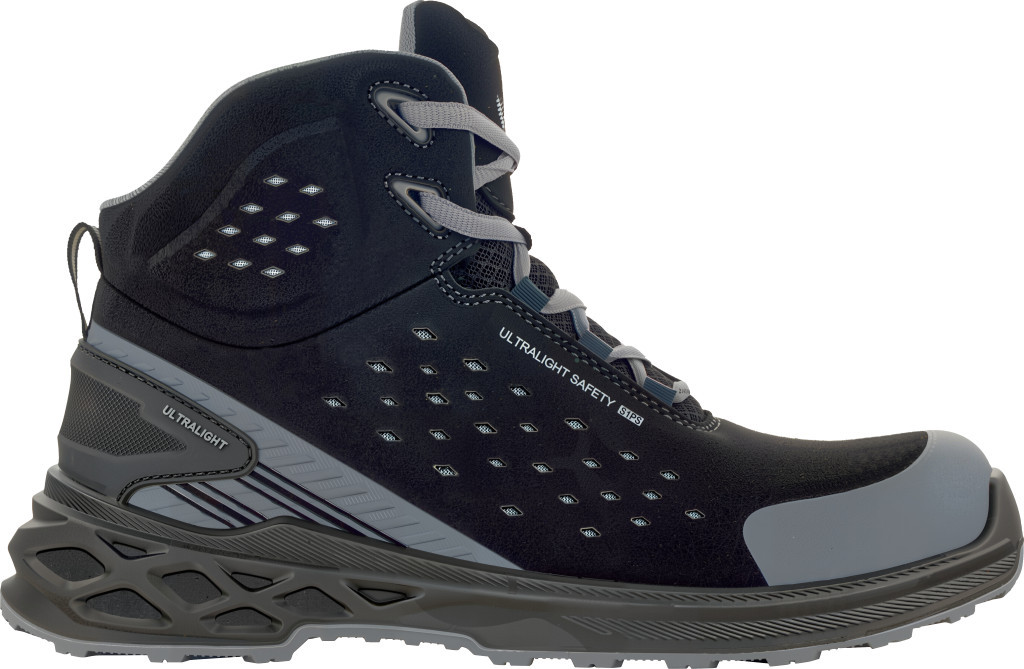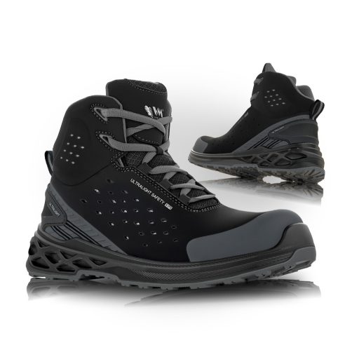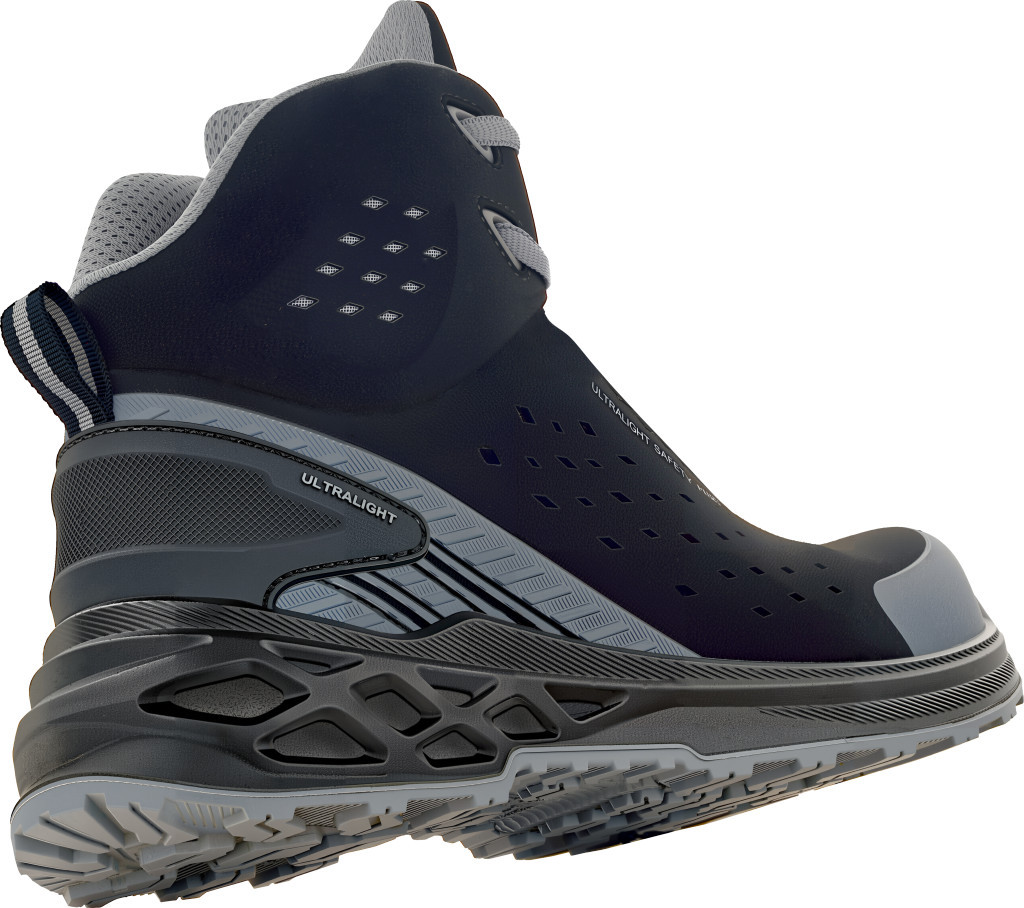 A felsőrész anyaga csiszolt, lélegző mikroszálas poromer anyag. A bakancsban kompozit orrkapli és kevlár talpátszúrás elleni védőlemez található. A bélés légáteresztő Mesh anyagból készült. 100% fémmentes kialakítású ESD-s bakancs.