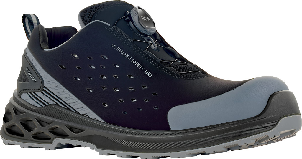 A felsőrész anyaga csiszolt, lélegző mikroszálas poromer anyag. A cipőben kompozit orrkapli és kevlár talpátszúrás elleni védőlemez található. A bélés légáteresztő Mesh anyagból készült. BOA fűzővel.